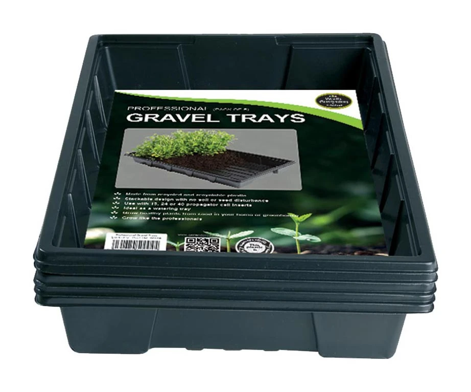 Diese große Anzuchtschale von Garland erleichtert Ihnen Ihren Heimanbau ungemein. Sie eignet sich hervorragend, um darin Samen für Gemüse oder Kräuter zu pflanzen oder Stecklinge zu ziehen. Dabei können Sie entweder direkt in der Schale säen, oder ihre Anzuchttöpfchen in die Schale stellen. Das bietet sich besonders dann an, wenn Sie die Anzuchtschale im Haus aufstellen möchten, denn sie hält die Pflänzchen sauber zusammen und fängt außerdem überschüssiges Gießwasser auf. Dieser Artikel enthält fünf große Anzuchtschalen von Garland, die aus recyceltem Plastik hergestellt und mehrfach wiederverwendbar sind. Zur Aufbewahrung können sie platzsparend ineinander gestellt werden.