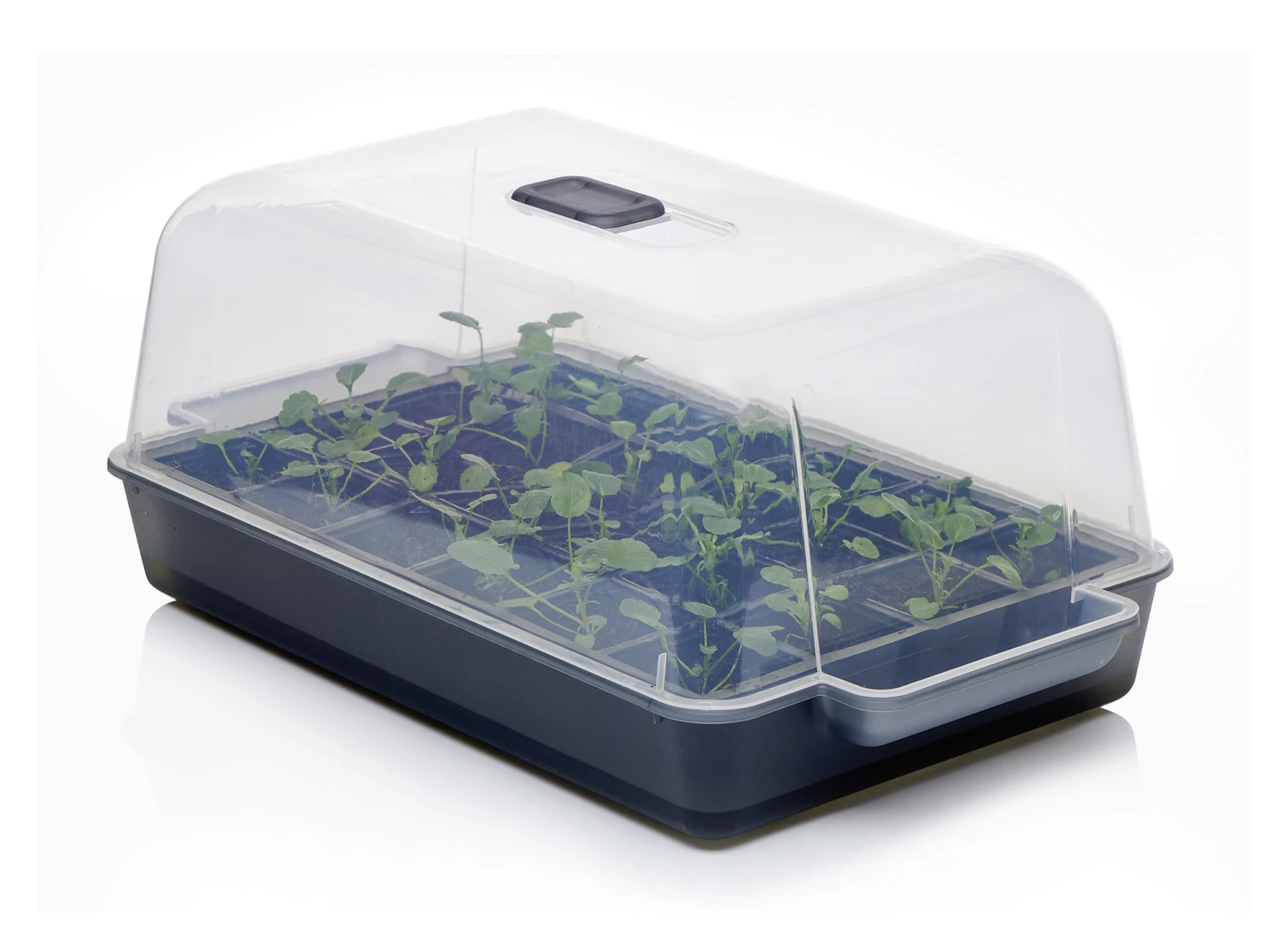 clever pots Gewächshaus schafft die ideale Umgebung für die Entwicklung von Samen zu gesunden Setzlingen. Der durchsichtige Boden macht den Wasserstand sichtbar, um Über- oder Unterbewässerung zu vermeiden. Das Kondenswasser wird zurück in die Bodenwanne geleitet. Dieses Gewächshaus passt auf alle Standard-Steckschalen, besteht aus PP-Kunststoff und ist recycelbar.