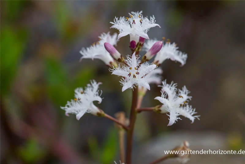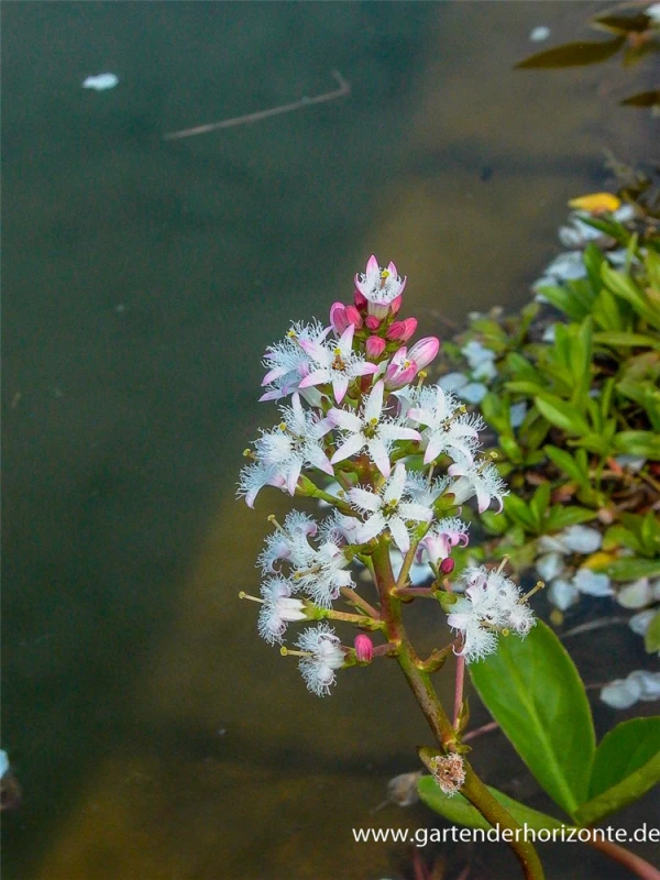 Der Fieberklee (Menyanthes trifoliata) ist mit seinen mittelgrünen Blättern eine ausgesprochen dekorative Wasserpflanze, die für solche Einsatzbereiche wie Teichrand, Bachlauf, Teich und Bienenweide besonders gut geeignet ist. Die Blüten erscheinen, je nach Sorte, in vielen Farben von Mai bis Juni. Er bevorzugt humosen, kalkfreien, lehmigen, feuchten bis nassen Boden in sonniger bis halbschattiger Lage. Der Fieberklee ist gut frostverträglich. Die buschige, breite Staude erreicht gewöhnlich eine Höhe von ca. 30 cm.