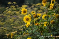 Helianthus decapetalus ‚Capenoch Star‘ bildet körbchenartige, zitronengelbe Blüten ab Juli.