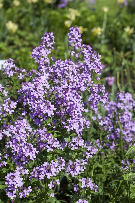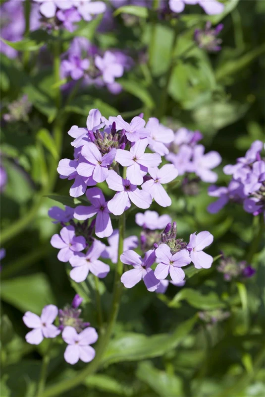 Hesperis matronalis bildet in Trauben angeordnete, violette Blüten ab Mai. Diese verströmen einen starken Duft.