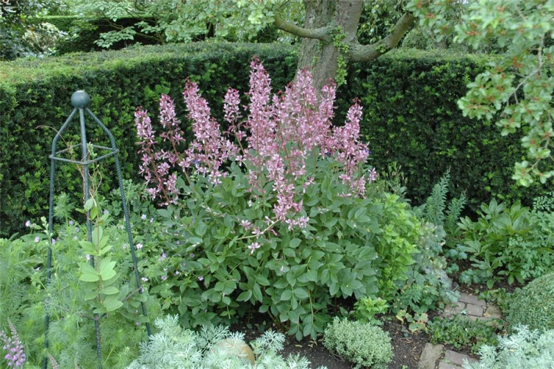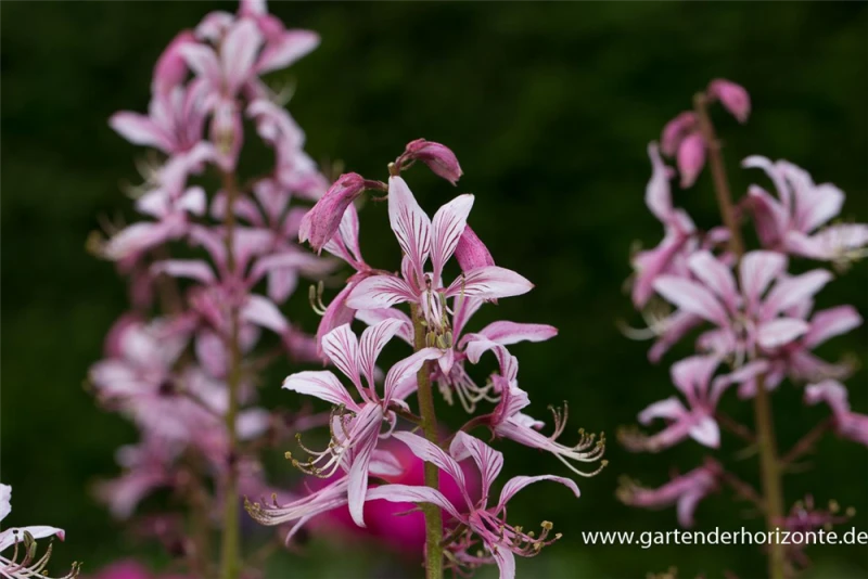 Der Gewöhnliche Diptam (Dictamnus albus) ist eine aufrechte Staude, die von Juni bis Juli rosafarbene, in Rispen angeordnete Blüten mit einem angenehmen Duft bildet. An einem sonnigen bis halbschattigen Standort mit durchlässigem, nährstoffreichem Boden erreicht er gewöhnlich eine Höhe von ca. 80 cm und wird ca. 60 cm breit. Der Gewöhnliche Diptam ist gut frostverträglich.