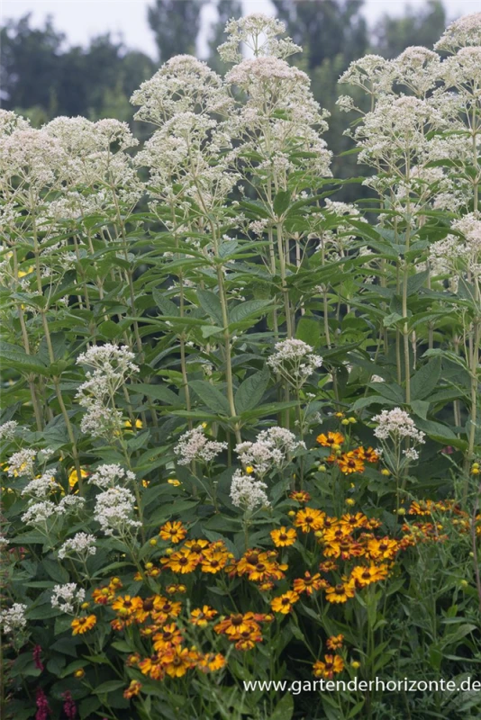 Synonyme (botanisch): Eupatorium purpureum ‚Album‘, Eupatorium maculatum ‚Album‘.