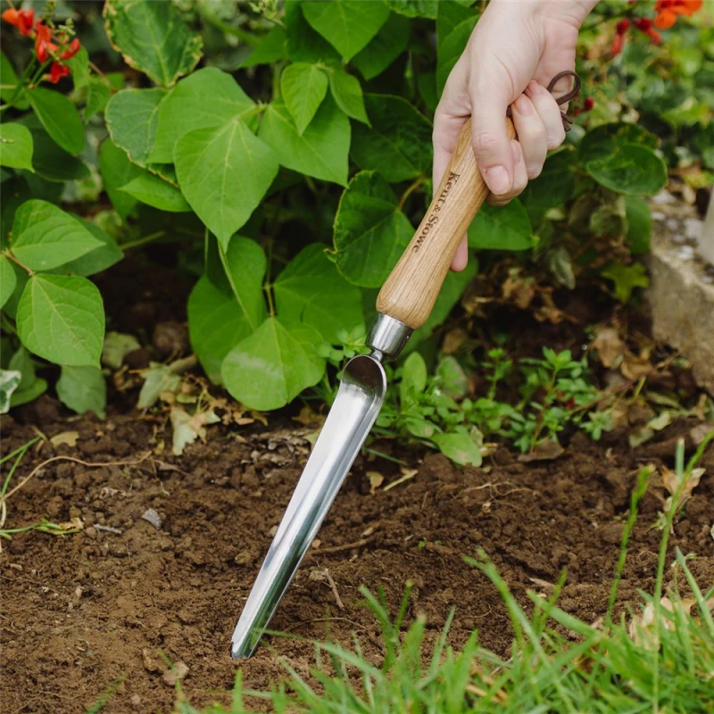 Die schmale Kent & Stowe Pflanzkelle kombiniert die Eigenschaften einer Kelle und eines Pflanzstabs und ist somit das ideale Werkzeug zum Pikieren und Umpflanzen.