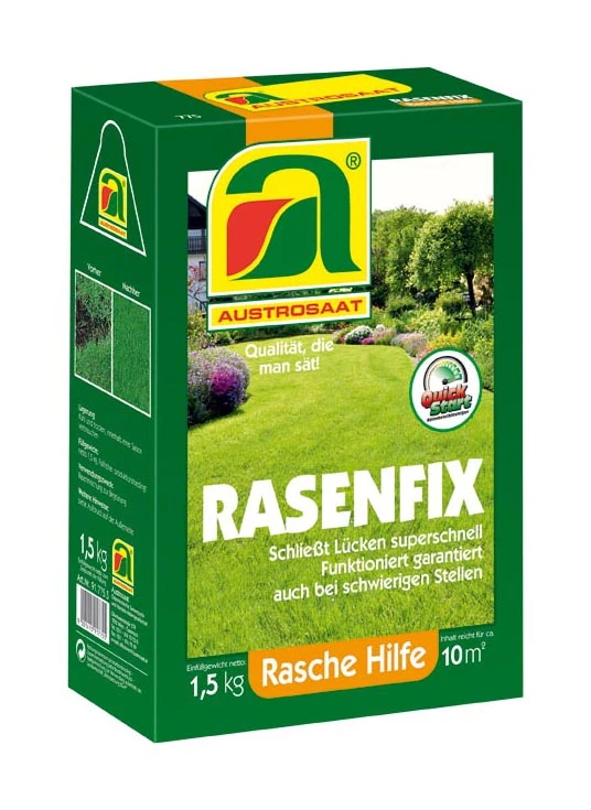 „5 in 1 Komplettlösung“ Rasensaat + Dünger + Quickstart© + Nährsubstrat + Algenkalk