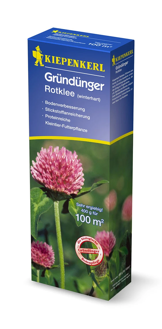 Rotklee ist eine altbewährte Gründüngungspflanze. Er trägt wesentlich zur Gesunderhaltung und Verbesserung des Gartenbodens bei. Der Ertrag und die Qualität an Folgekulturen wie Gemüse und Blumen werden durch zusätzliche Nährstoffspeicherung gesteigert. Die kräftigen Pfahlwurzeln lockern den Boden. An ihnen bilden sich zahlreiche Knöllchenbakterien, die Stickstoff im Boden anreichern.