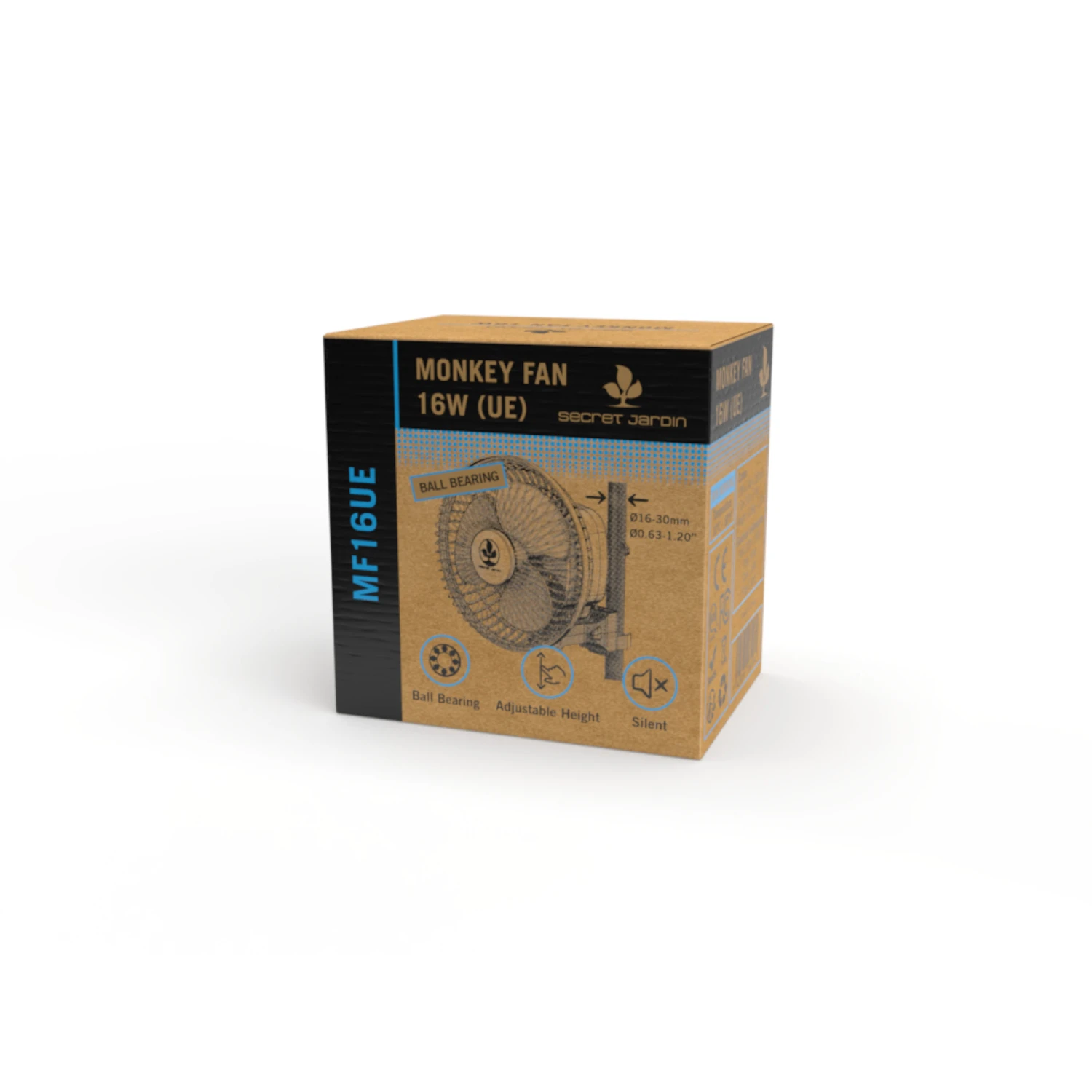 Der Secret Jardin Monkey Fan ist ein Umluftventilator mit zwei Schaltstufen und ideal für den Einsatz in Growzelten geeignet, da er einfach an die Stangen geklippt werden kann. Er wird mit drei Fixierungselementen geliefert und passt sich an alle Stangen mit einem Durchmesser von 16 bis 30 mm an.