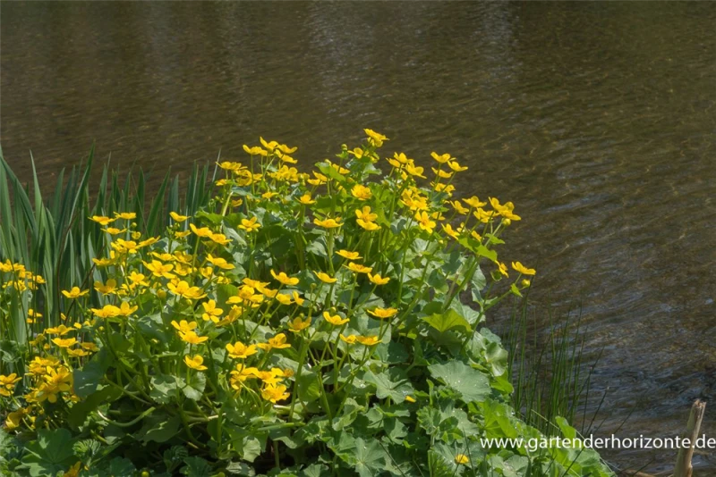 Die Sumpf-Dotterblume (Caltha palustris) ist mit ihren dunkelgrünen Blättern eine ausgesprochen dekorative Wasserpflanze, die für solche Einsatzbereiche wie Teichrand, Bachlauf, Teich und Bienenweide besonders gut geeignet ist. Die angenehm duftenden Blüten erscheinen, je nach Sorte, in vielen Farben von März bis Mai. Sie bevorzugt lockeren, sandigen Boden in sonniger bis schattiger Lage. Die Sumpf-Dotterblume ist gut frostverträglich. Die horstbildende Staude erreicht gewöhnlich eine Höhe von ca. 50 cm.