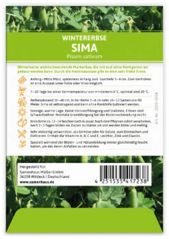 Winterharte, wohlschmeckende Markerbse, die mit und ohne Rankgerüst angebaut werden kann. Durch die Herbstaussaat gibt es eine sehr frühe Ernte.