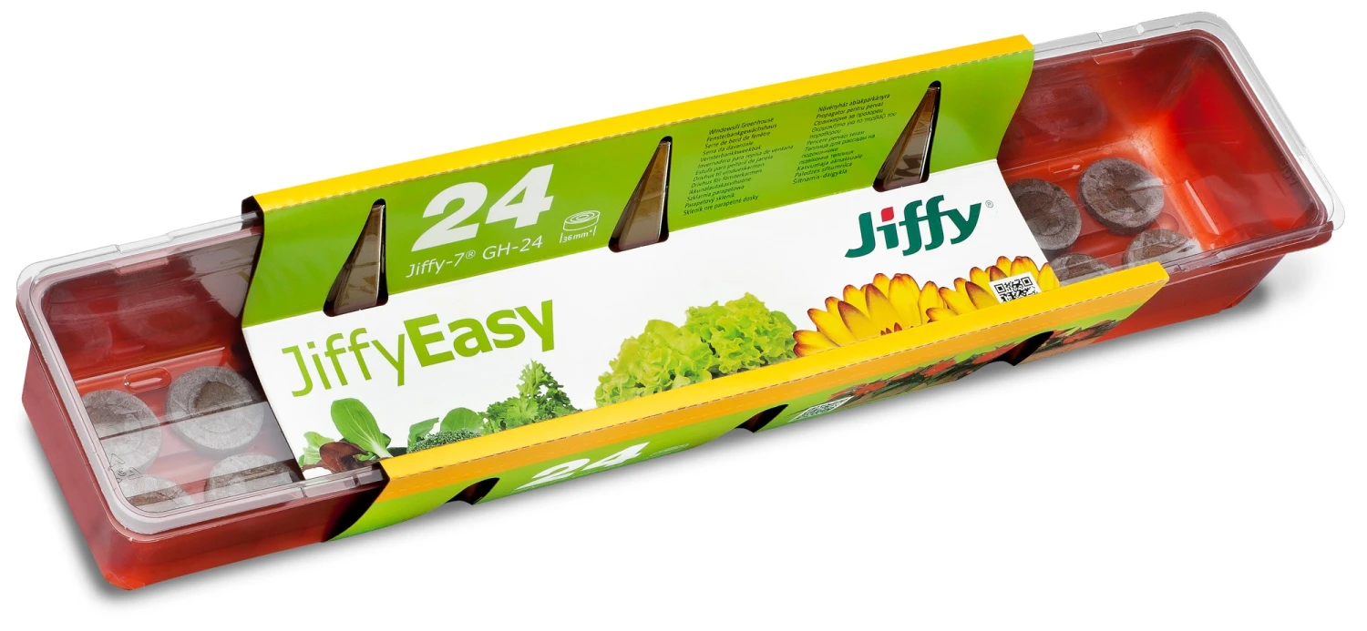 Zimmergewächshaus im Miniformat für die Fensterbank. Mitgeliefert werden 24 Stück Original Jiffy Torfquelltöpfe – Ihre bewährten Anzuchthelfer, für Stecklinge oder Samen. Jiffy-7-Quelltopf – Topf und beste Anzuchterde in einem! In ein feines Netz wird hochwertiges Substrat gefüllt und anschließend zu einem handlichen Tab komprimiert. Durch die Zugabe von Wasser wächst der Torfquelltopf in wenigen Augenblicken auf bis zu siebenfache Größe heran, zusammengehalten von einem feinen Netz, das für optimalen Luft-/ Wasseraustausch sorgt.